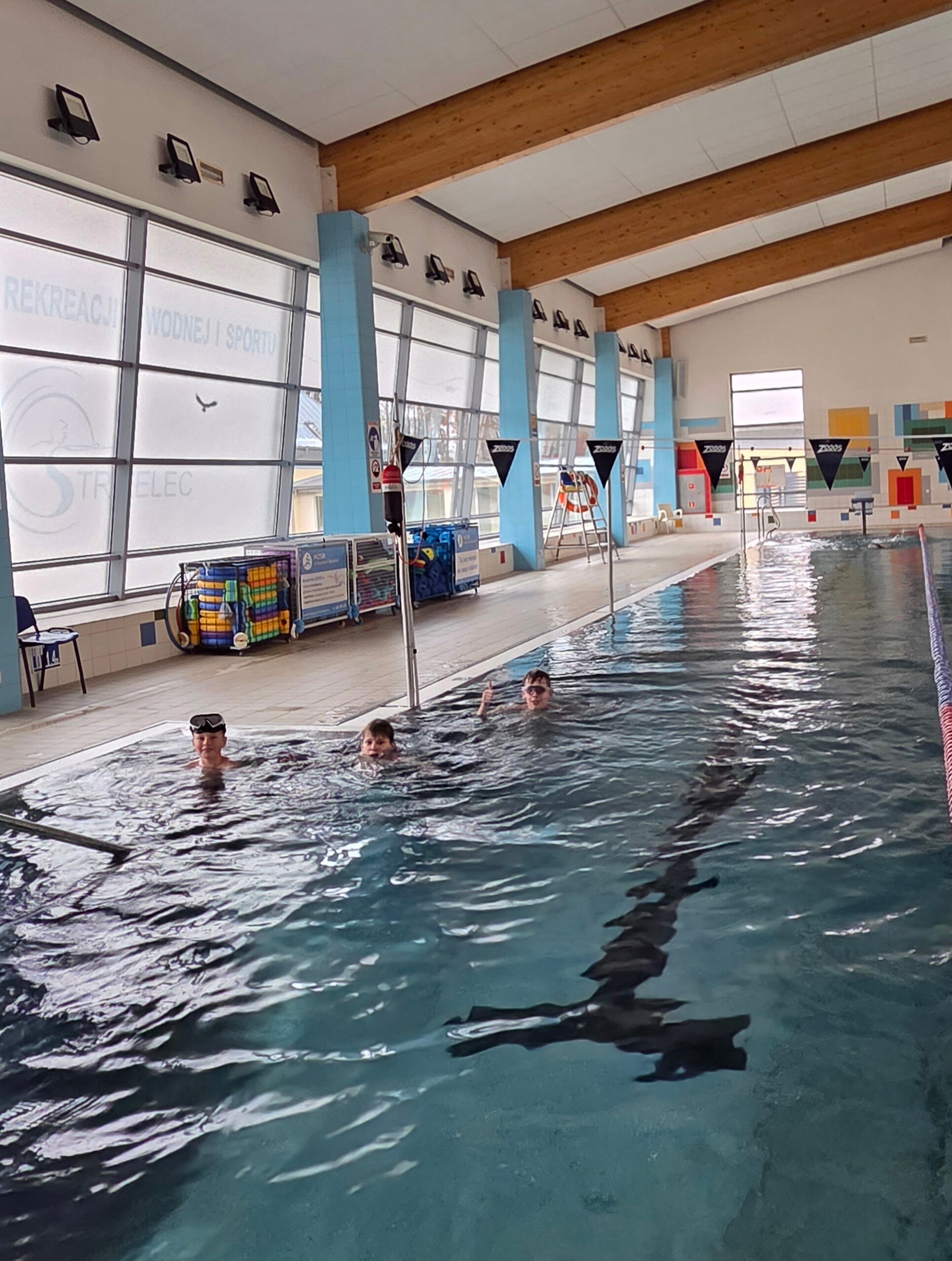 Środa to kolejny wypad na strzelecki basen , gdzie ponownie dzieci mogły skorzystać z wszystkich wodnych atrakcji i zajęć w wodzie, oraz wykazać się swoją aktywnością fizyczną.