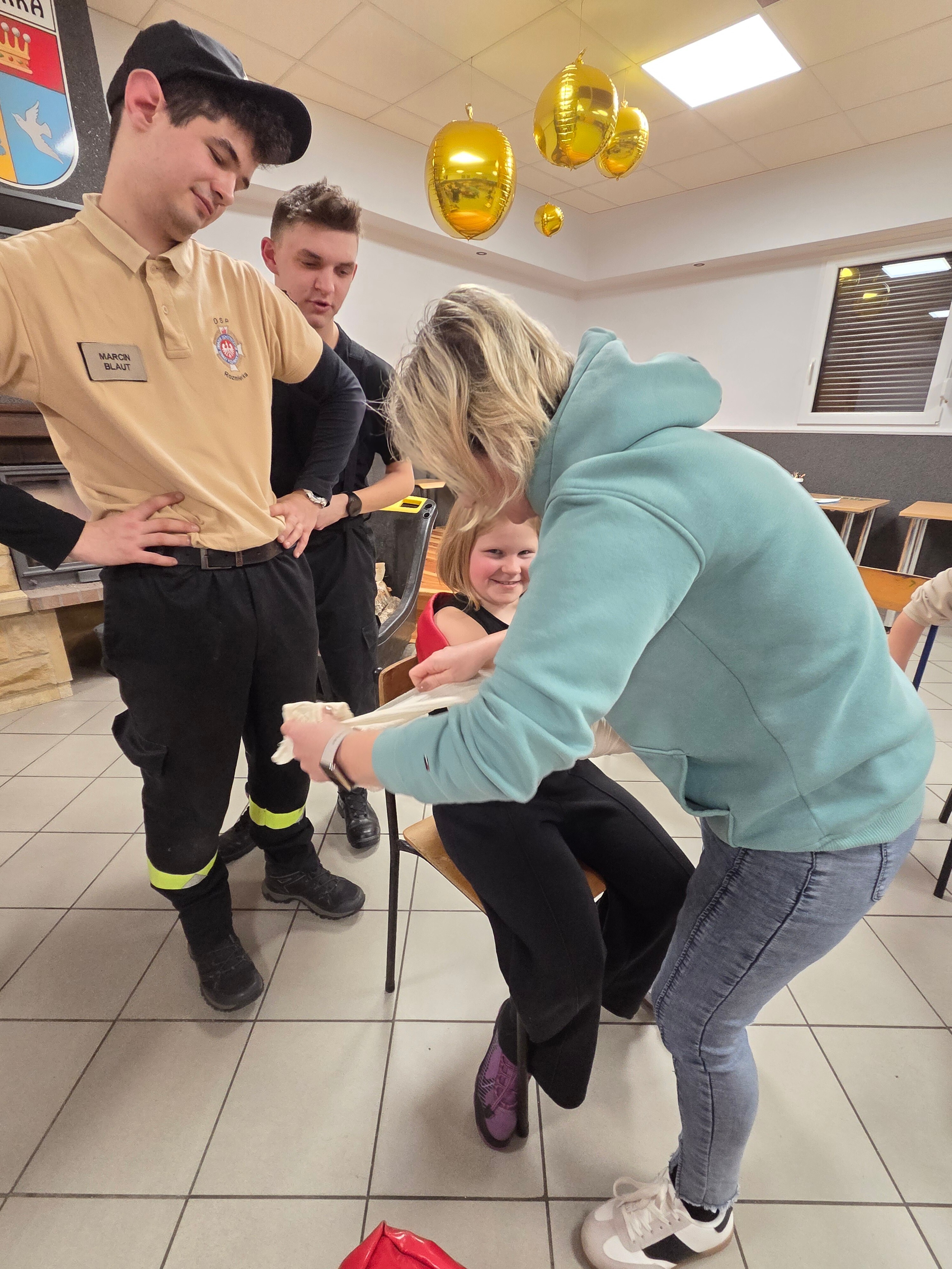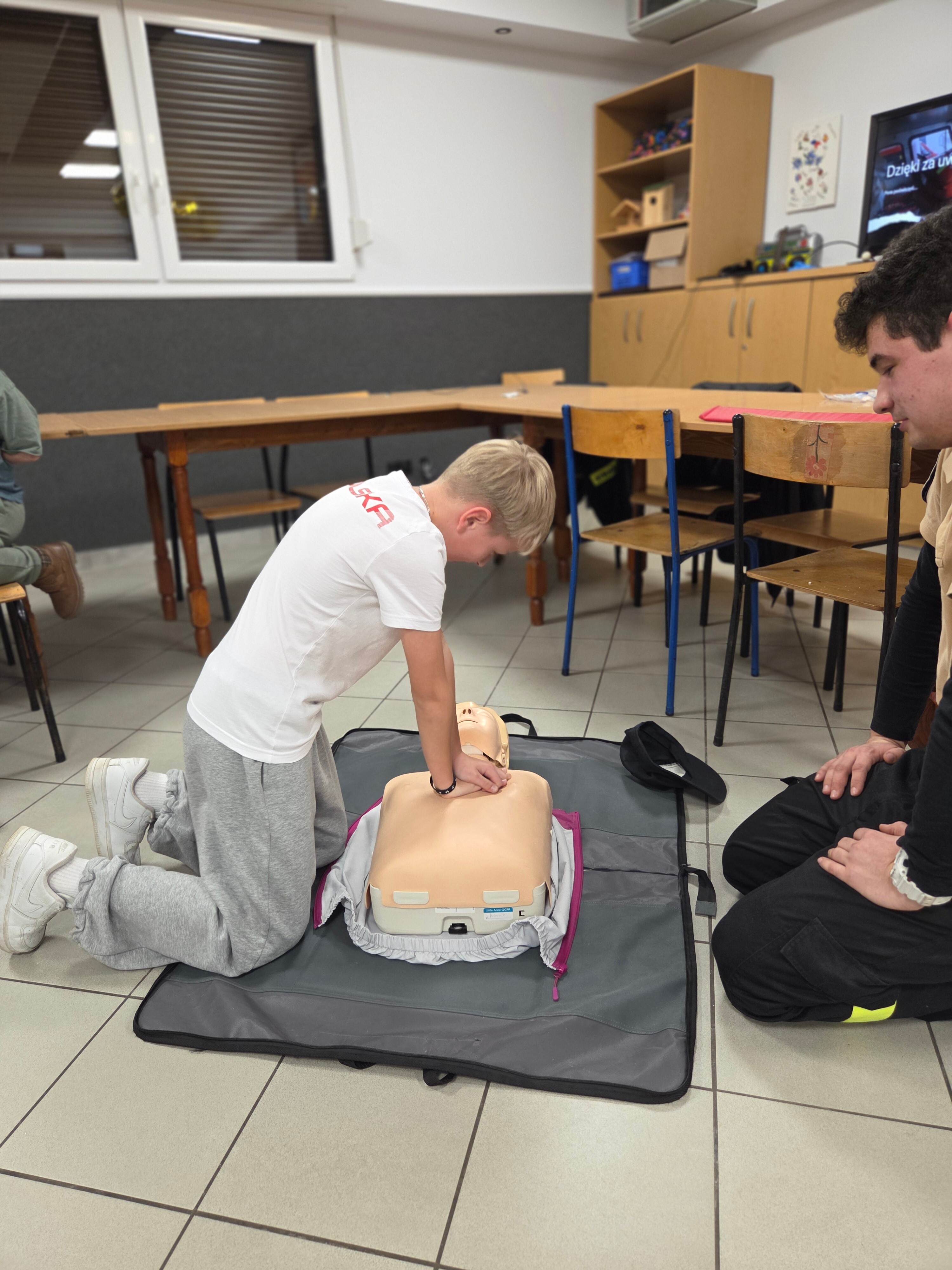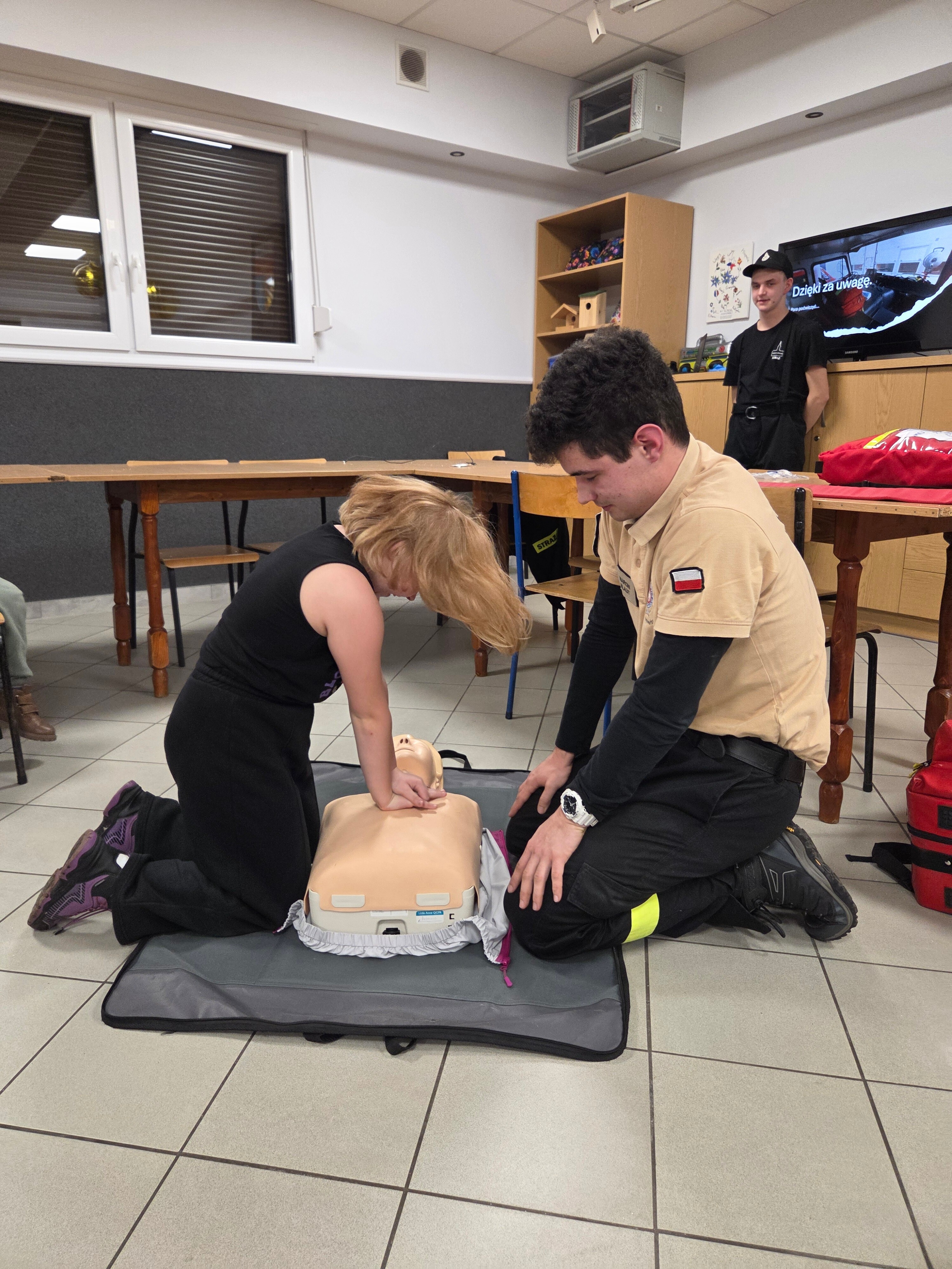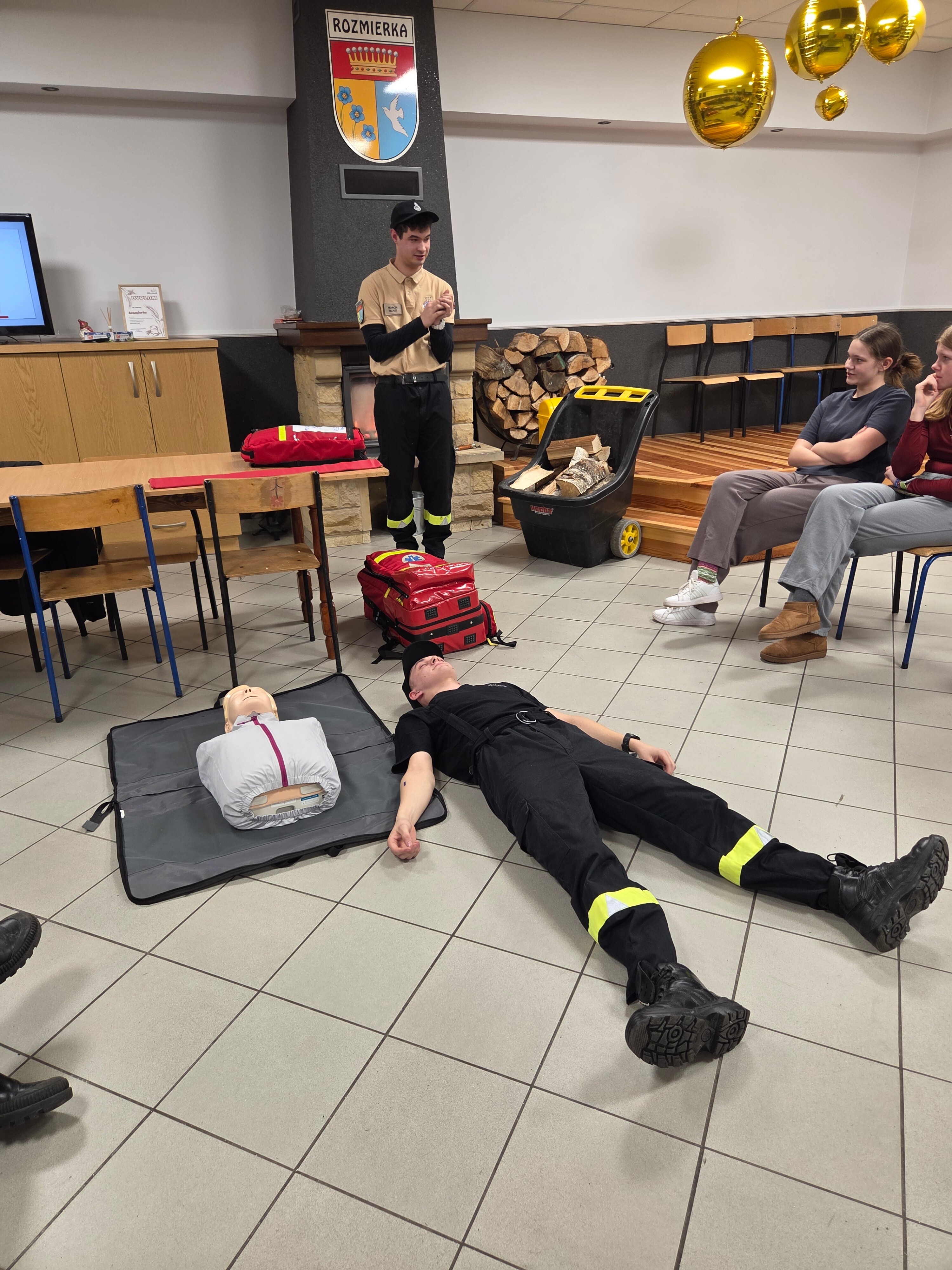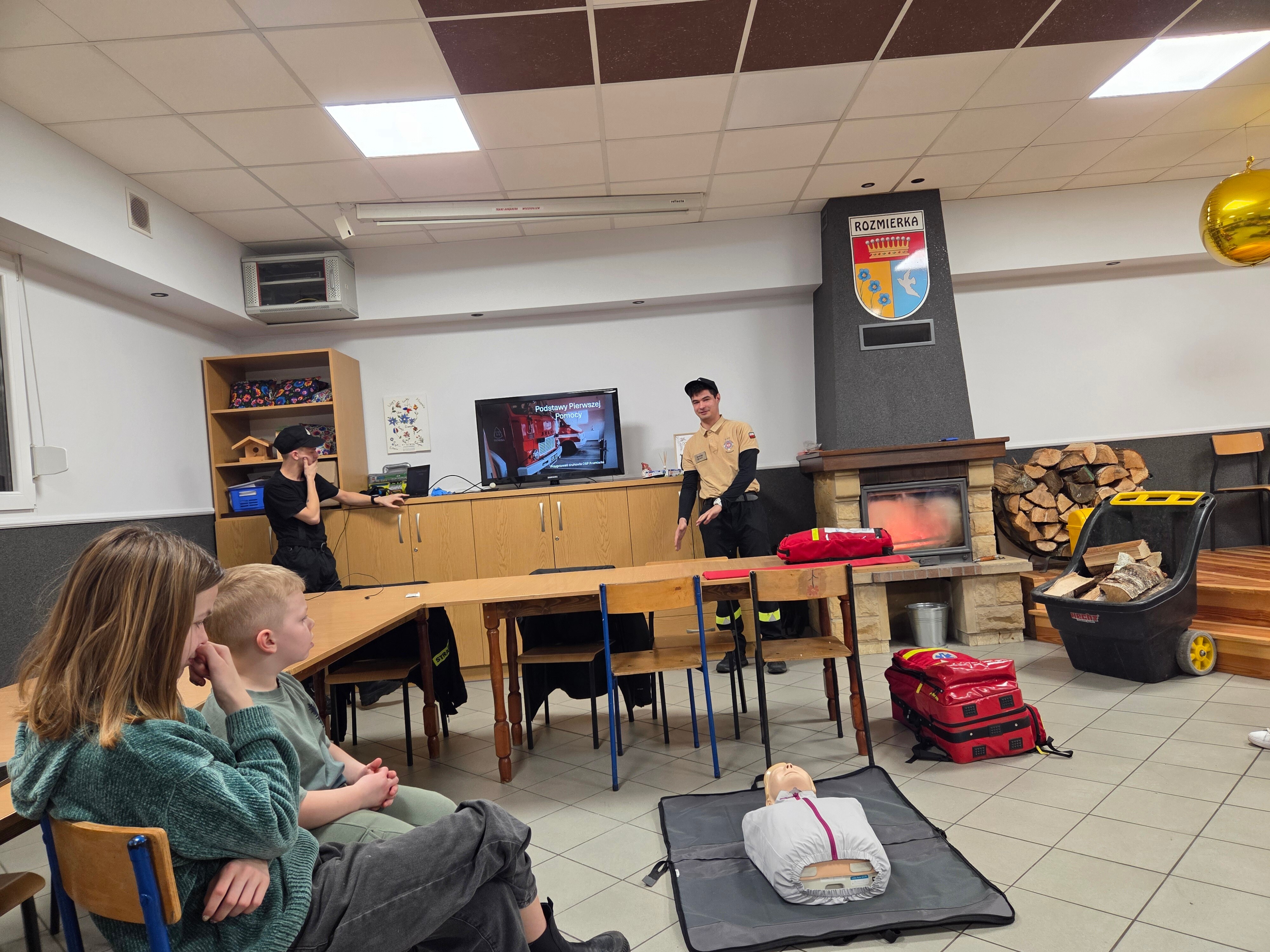 W piątek odwiedzili nas strażacy Marcin i Marcel z miejscowej OSP. Warsztaty nazwaliśmy "Umiem pomagać" a nasi strażacy omówili tematy związane z udzielaniem pierwszej pomocy. Po teoretycznej części która wywołała duże zainteresowanie i dużo pytań każdy z uczestników mógł osobiście na fantomie poćwiczyć zasady resuscytacji krążeniowo-oddechowej (RKO) oraz założyć opatrunek na dowolnej części ciała, a wszystko pod czujnym okiem instruktorów. Obecni uznali iż temat pierwszej pomocy jest bardzo ważny i warto wiedzieć jak postąpić w sytuacji zagrożenia.