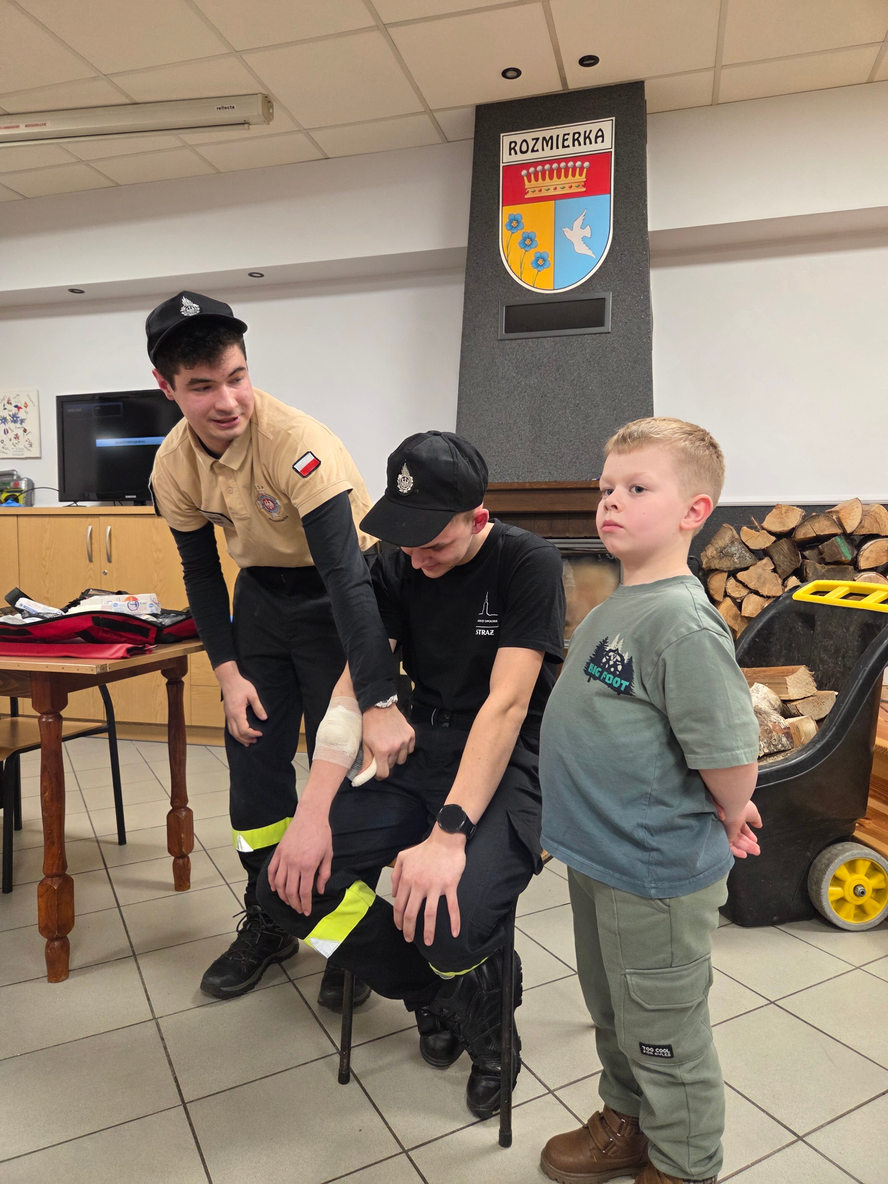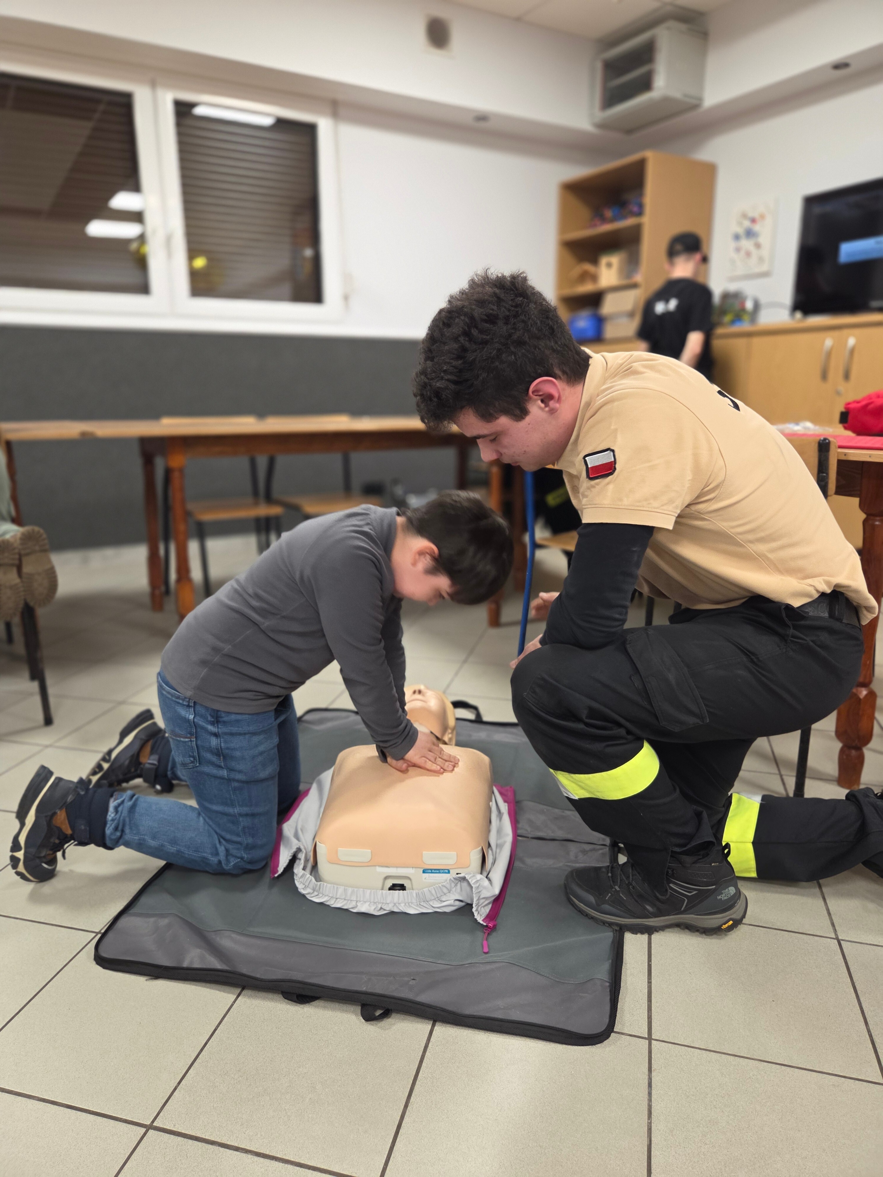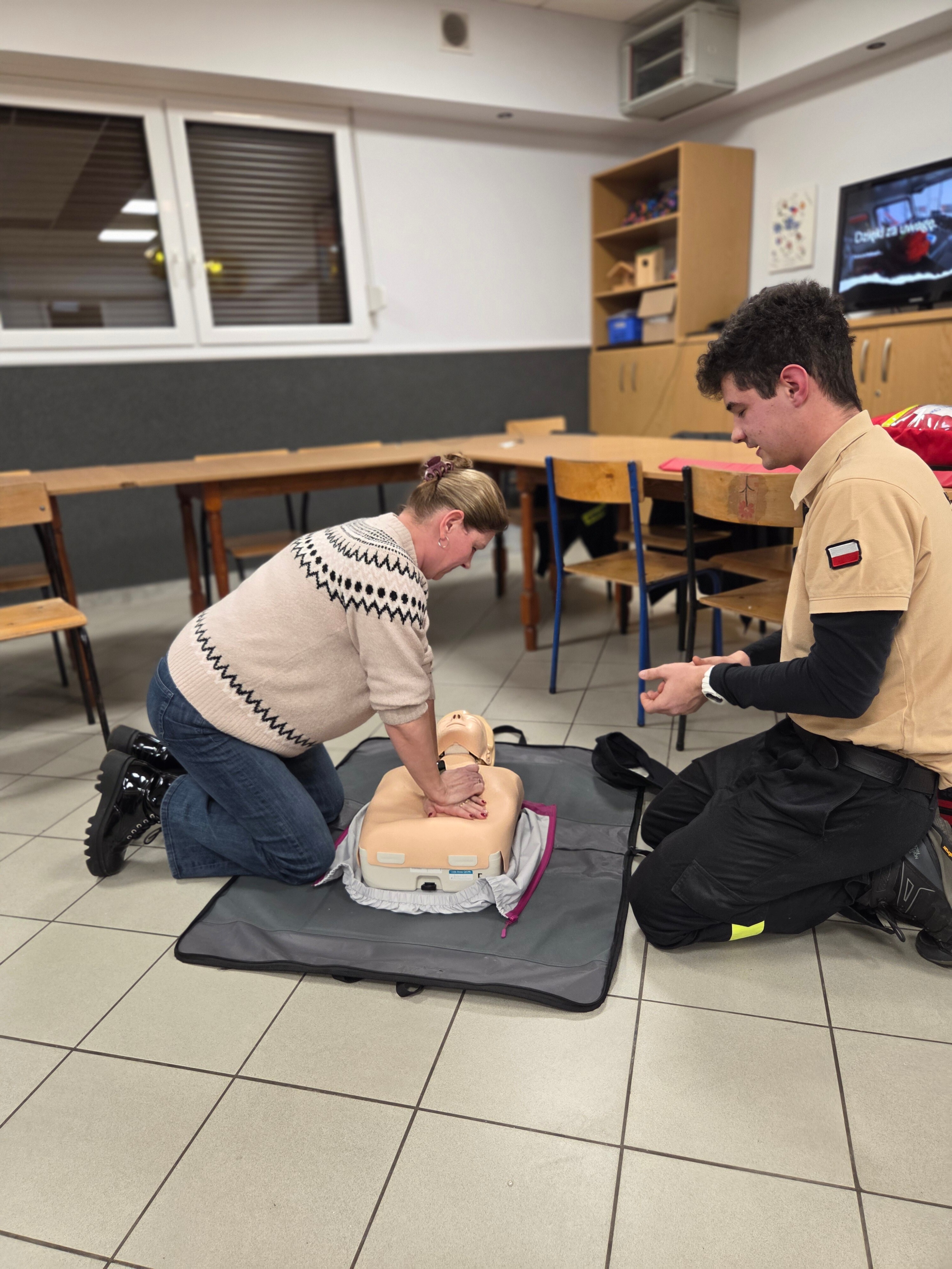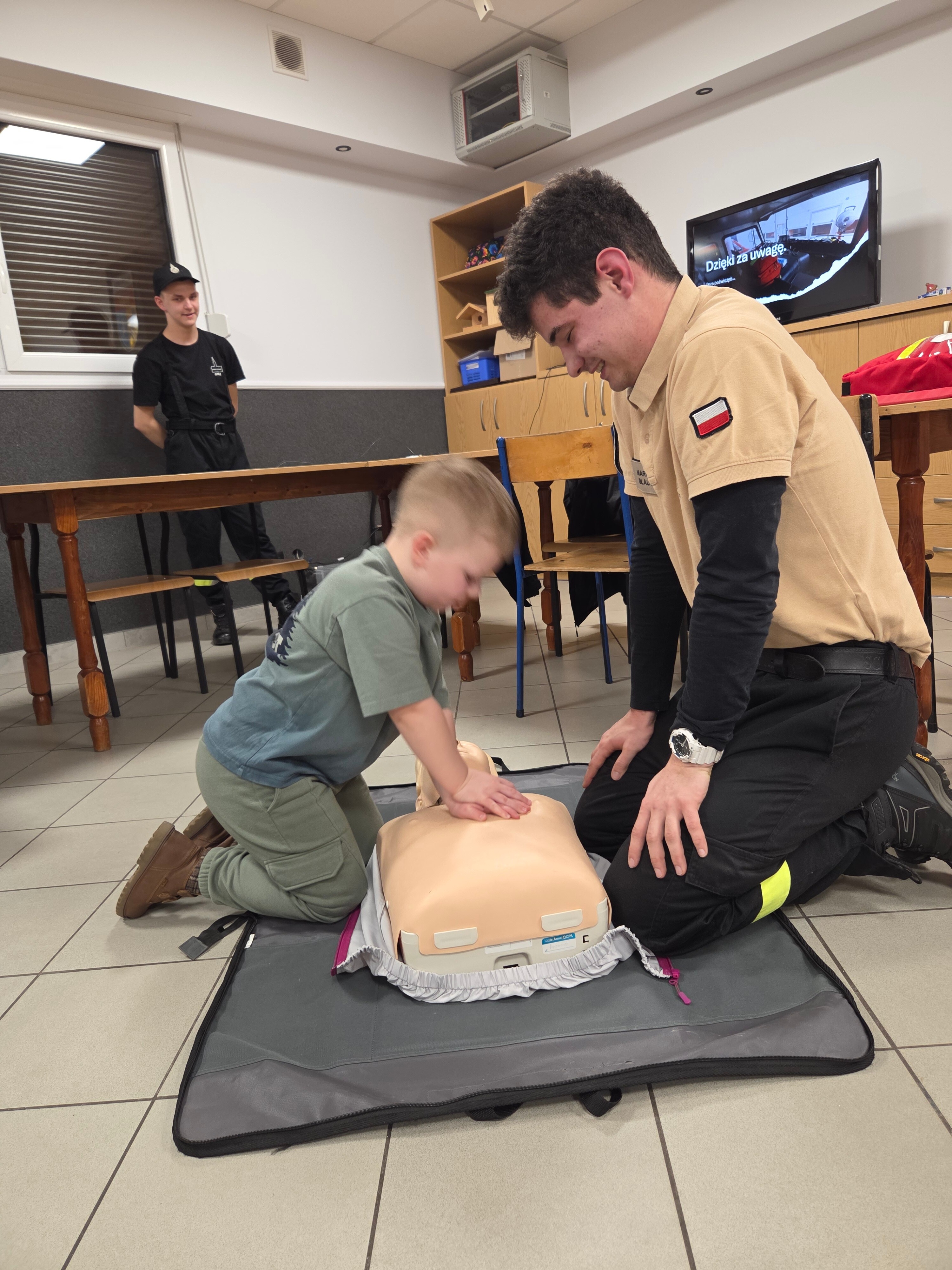 W piątek odwiedzili nas strażacy Marcin i Marcel z miejscowej OSP. Warsztaty nazwaliśmy "Umiem pomagać" a nasi strażacy omówili tematy związane z udzielaniem pierwszej pomocy. Po teoretycznej części która wywołała duże zainteresowanie i dużo pytań każdy z uczestników mógł osobiście na fantomie poćwiczyć zasady resuscytacji krążeniowo-oddechowej (RKO) oraz założyć opatrunek na dowolnej części ciała, a wszystko pod czujnym okiem instruktorów. Obecni uznali iż temat pierwszej pomocy jest bardzo ważny i warto wiedzieć jak postąpić w sytuacji zagrożenia.