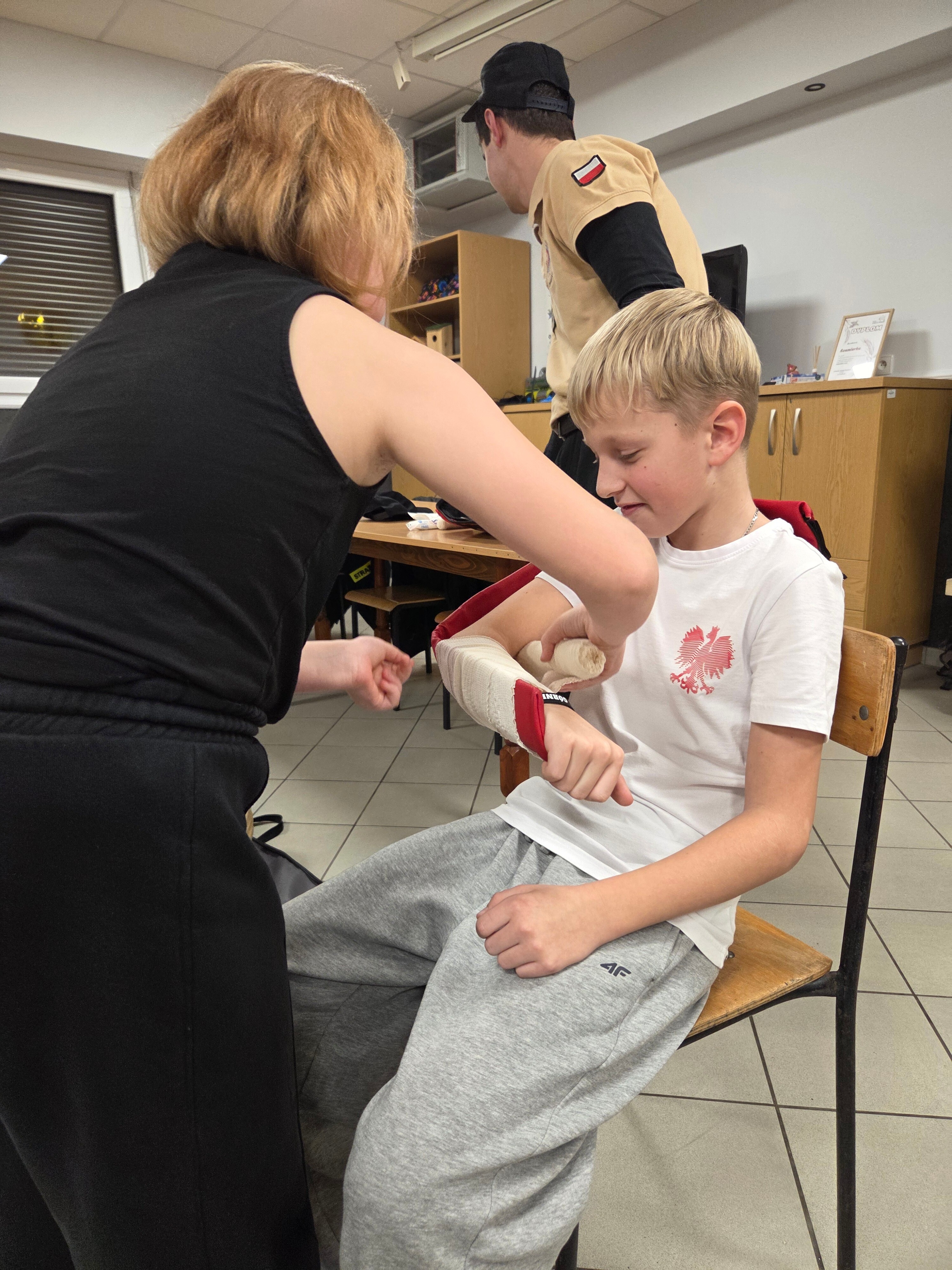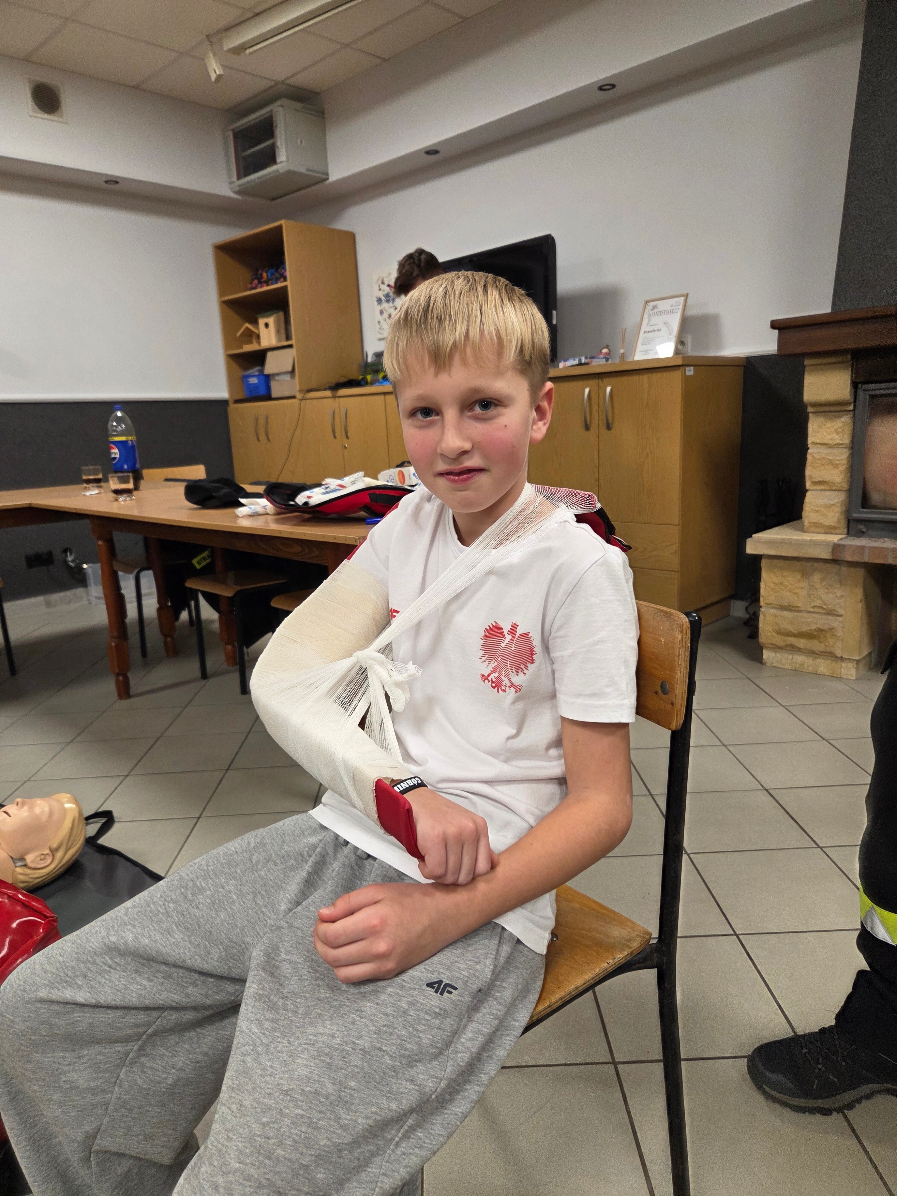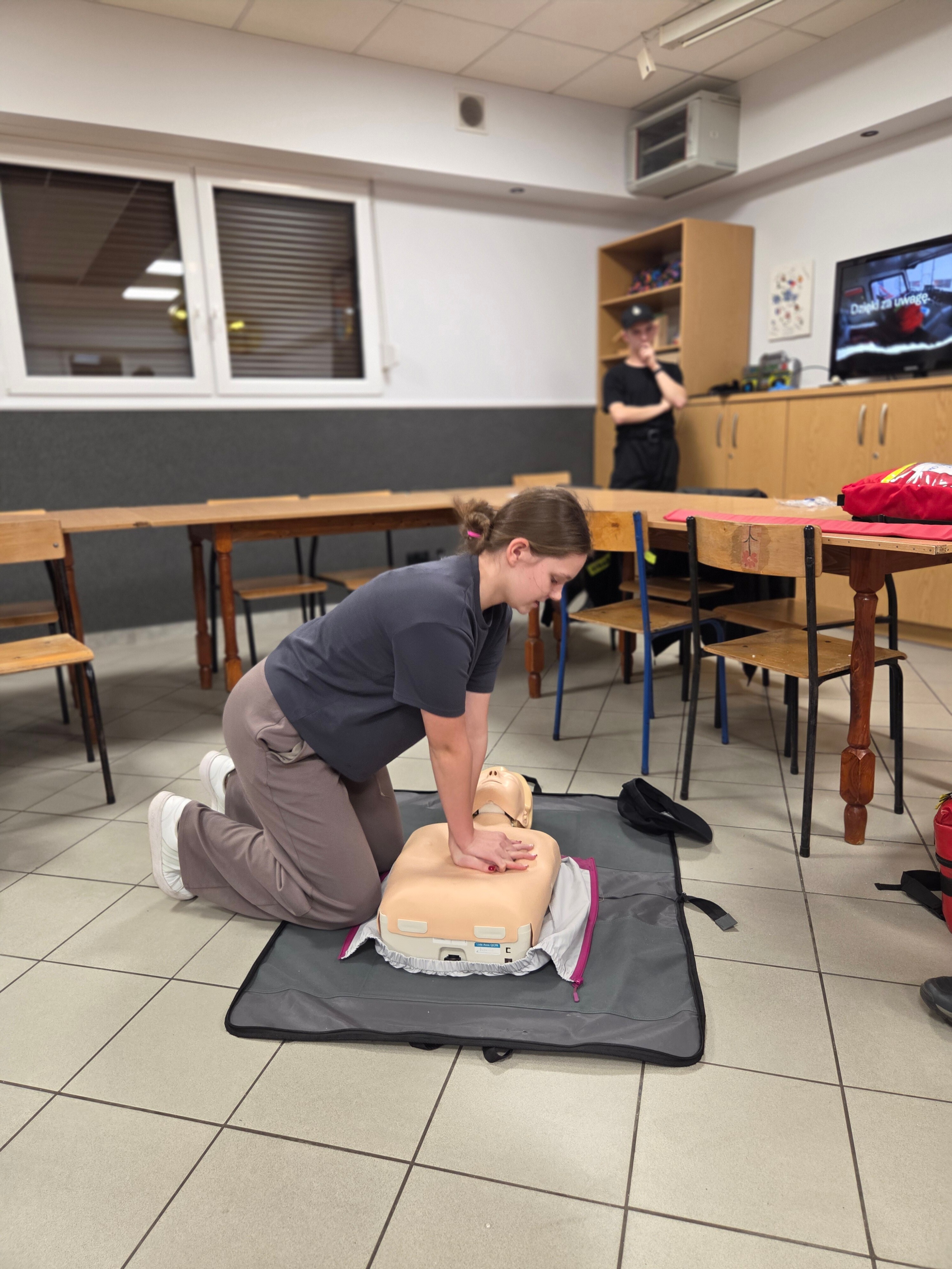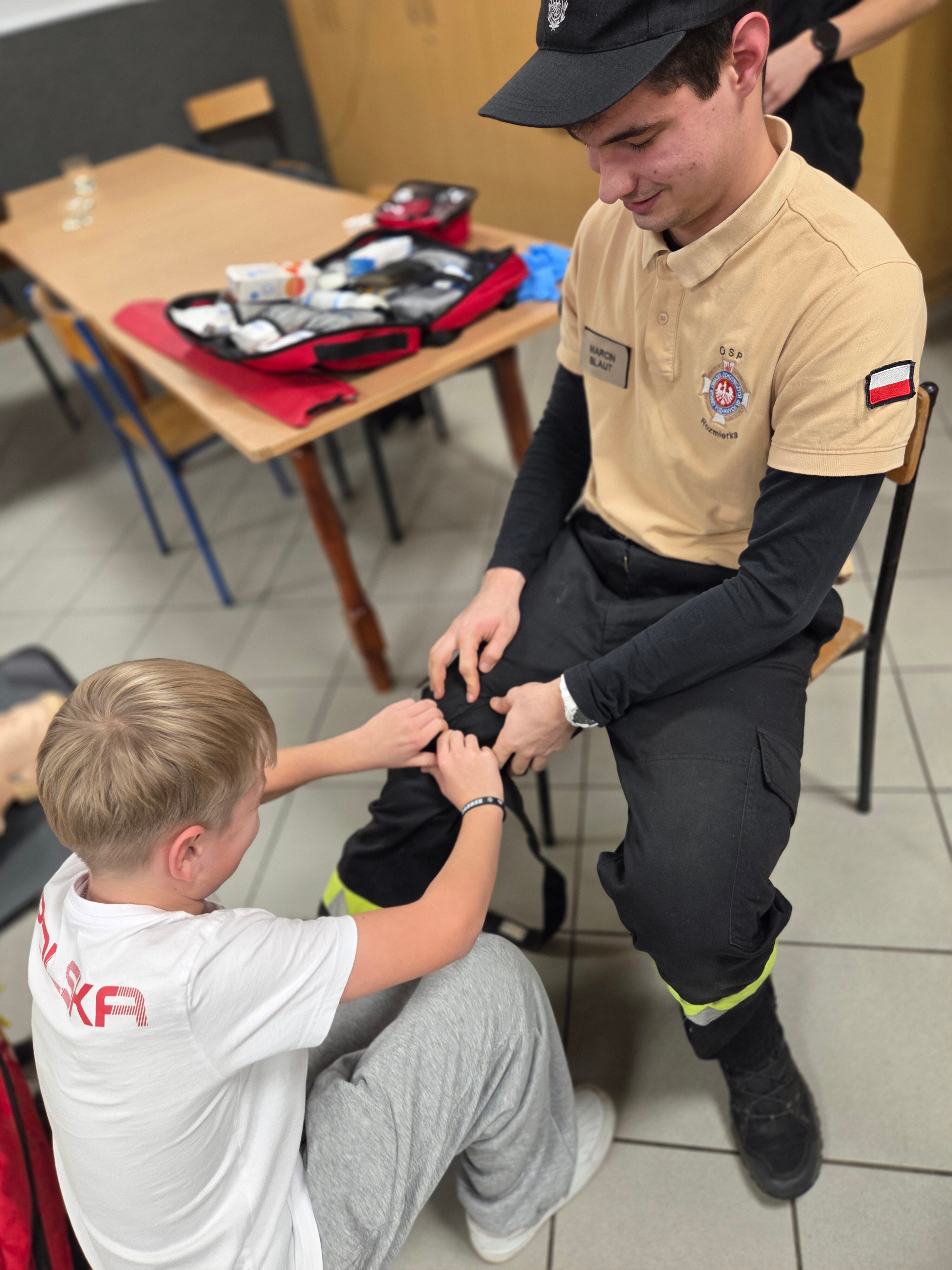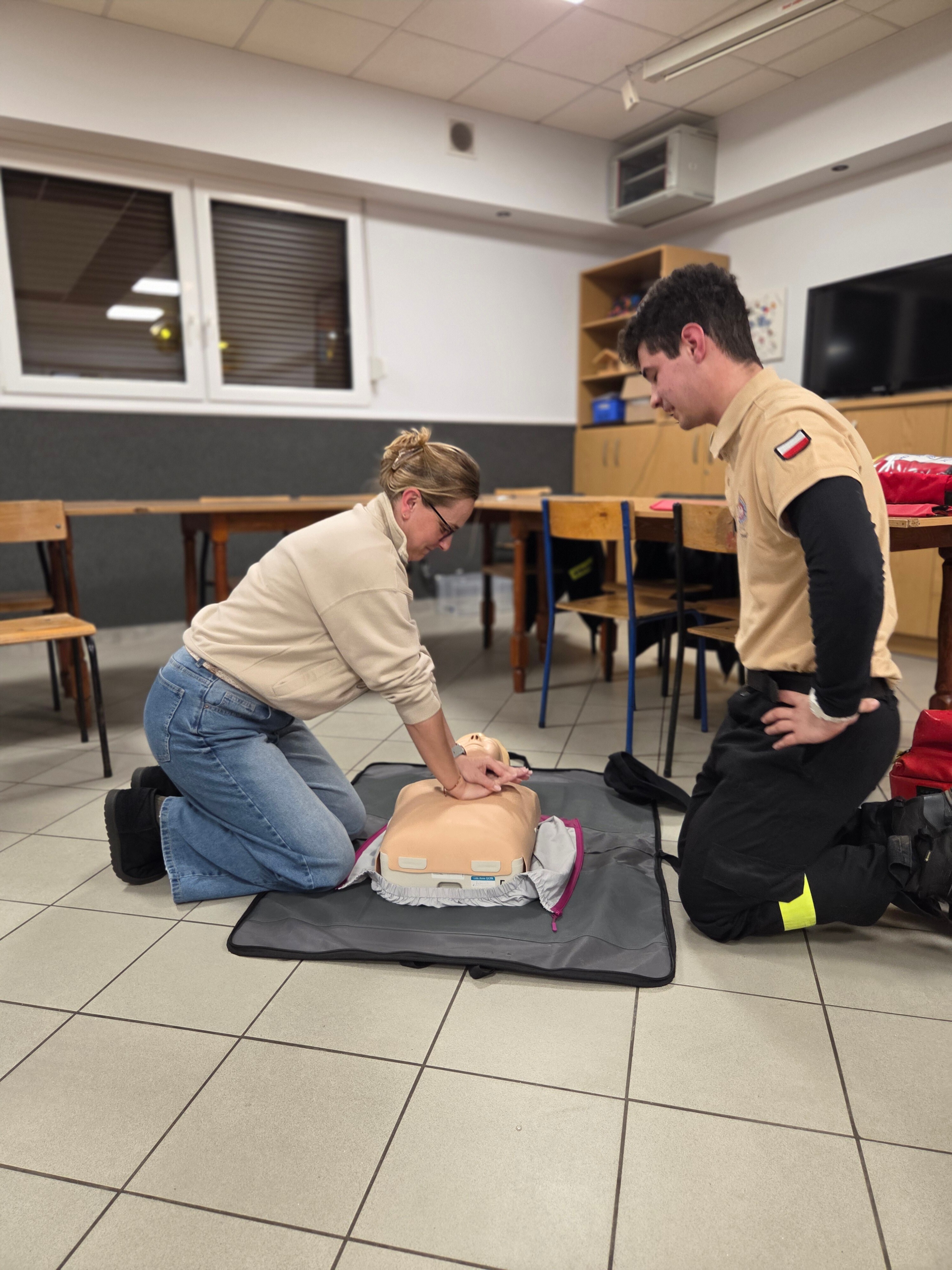 W piątek odwiedzili nas strażacy Marcin i Marcel z miejscowej OSP. Warsztaty nazwaliśmy "Umiem pomagać" a nasi strażacy omówili tematy związane z udzielaniem pierwszej pomocy. Po teoretycznej części która wywołała duże zainteresowanie i dużo pytań każdy z uczestników mógł osobiście na fantomie poćwiczyć zasady resuscytacji krążeniowo-oddechowej (RKO) oraz założyć opatrunek na dowolnej części ciała, a wszystko pod czujnym okiem instruktorów. Obecni uznali iż temat pierwszej pomocy jest bardzo ważny i warto wiedzieć jak postąpić w sytuacji zagrożenia.
