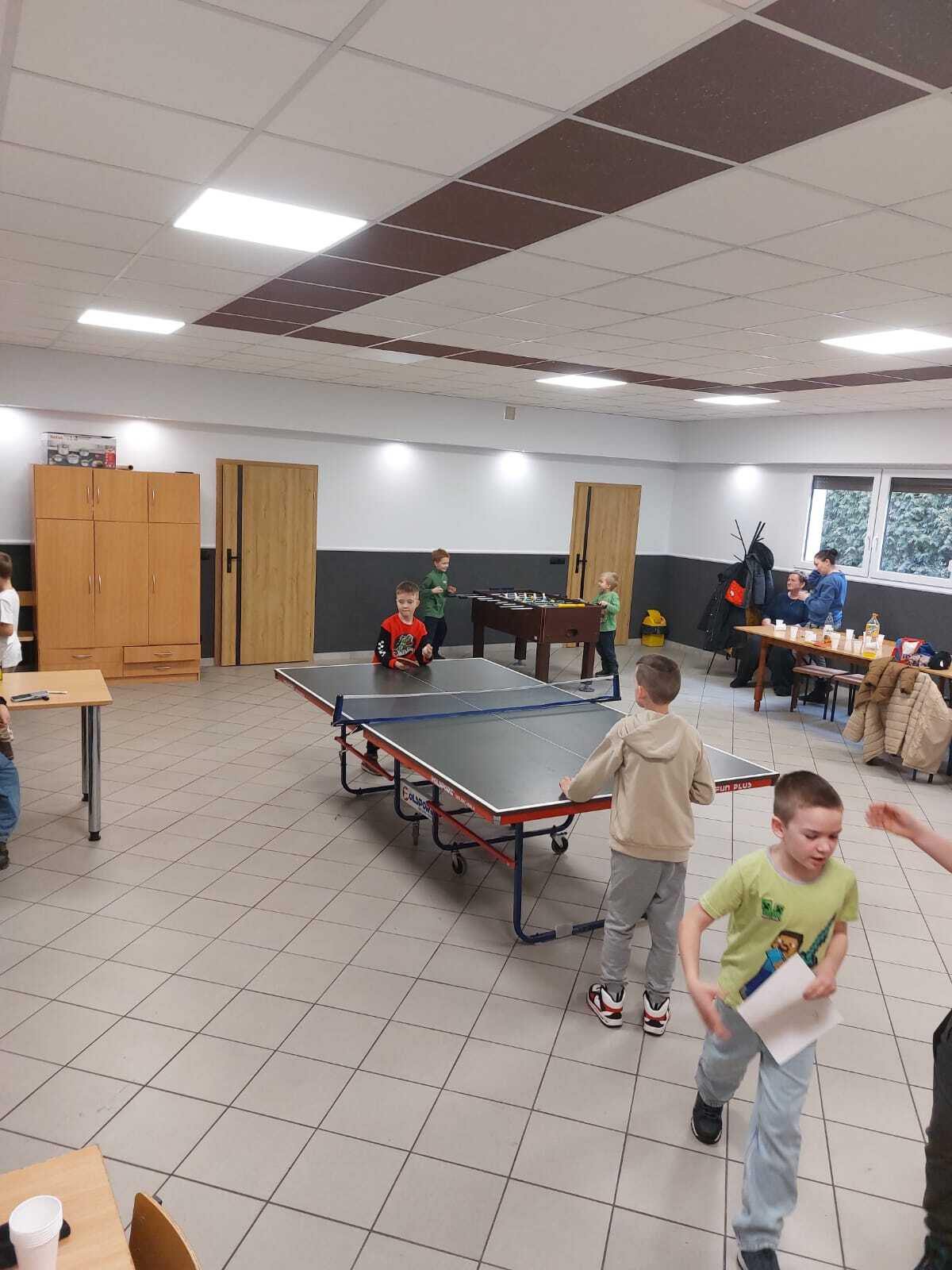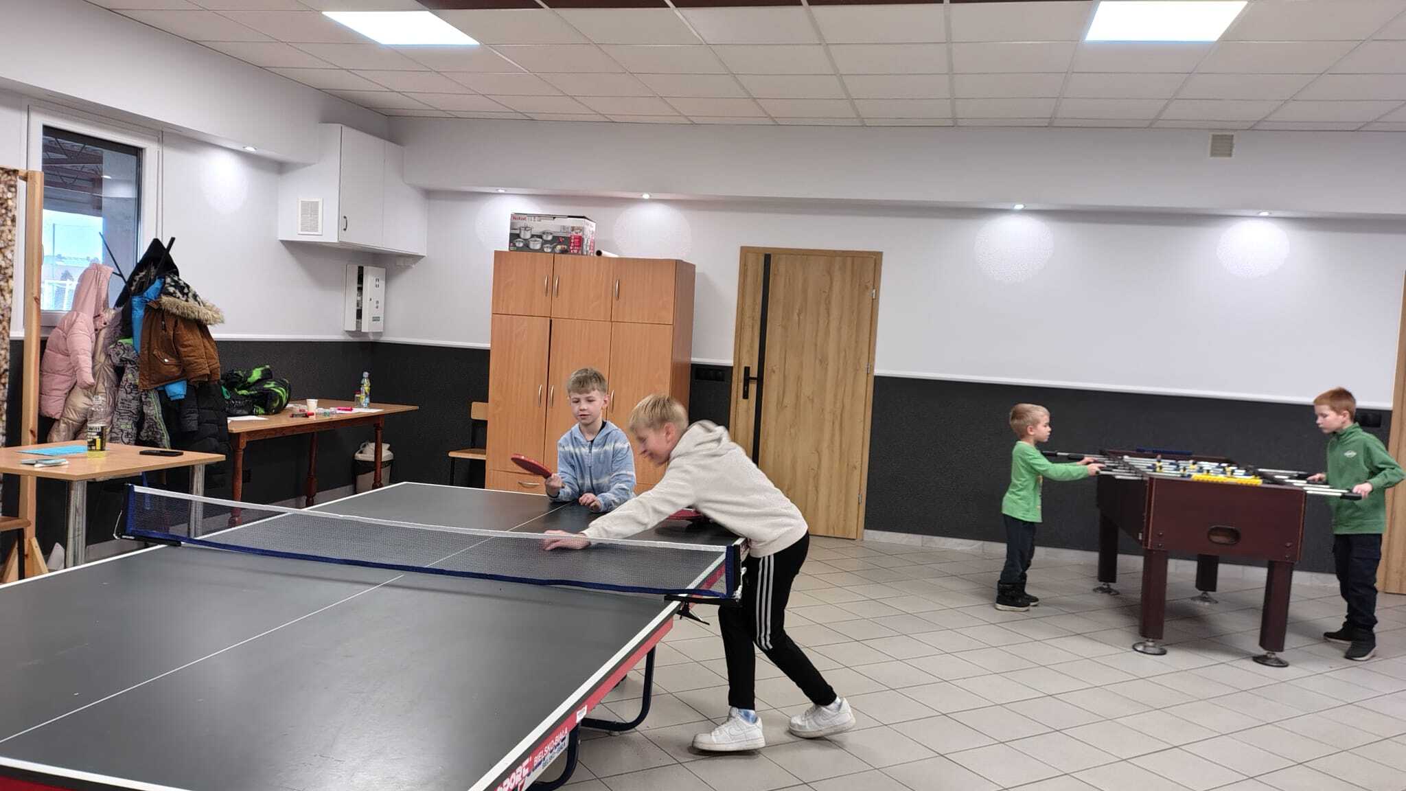 Poniedziałek potraktowaliśmy jako rozgrzewkę oferując uczestnikom gry i zajęcia świetlicowe, były rozgrywki w tenisa stołowego, były boje w piłkarzyki, gry planszowe oraz kącik plastyczny gdzie można było rysować, wycinać i sklejać.